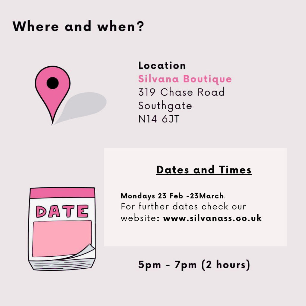 Session 3/Mondays starting 23 February2026 and 02,09,16,23 March 2026. Time: 5pm - 7pm (2 hours)